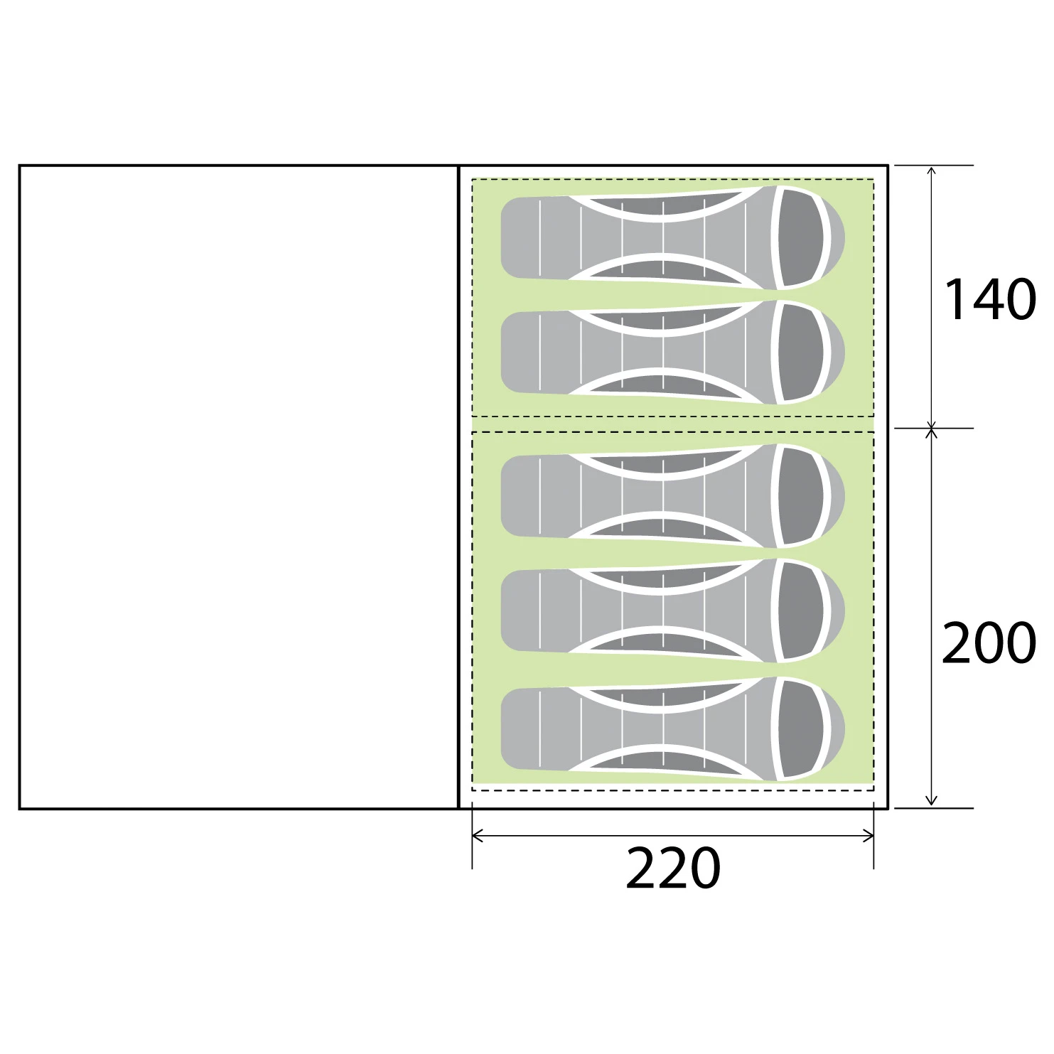 - 490 x 360 x 195 cm (L x B x H)