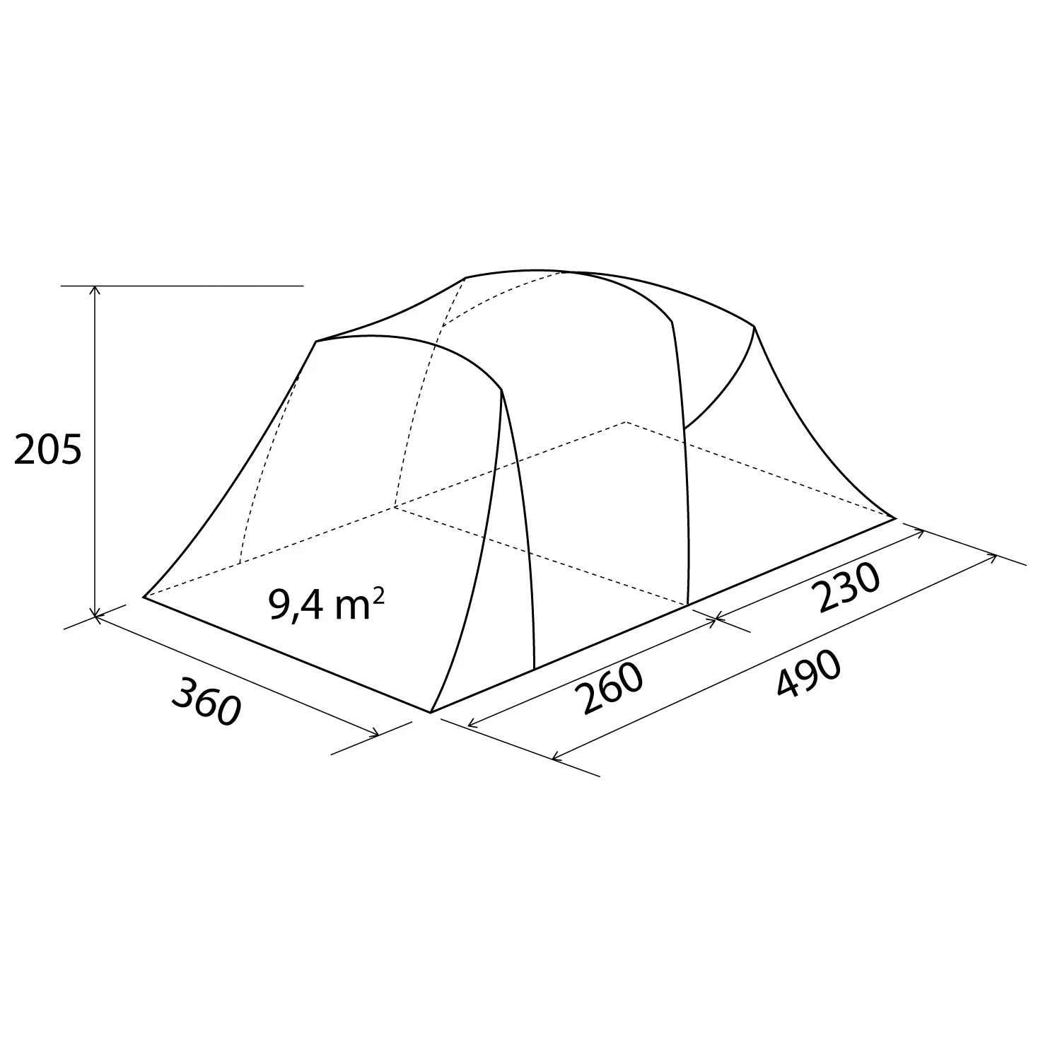 - 490 x 360 x 205 cm (L x B x H)