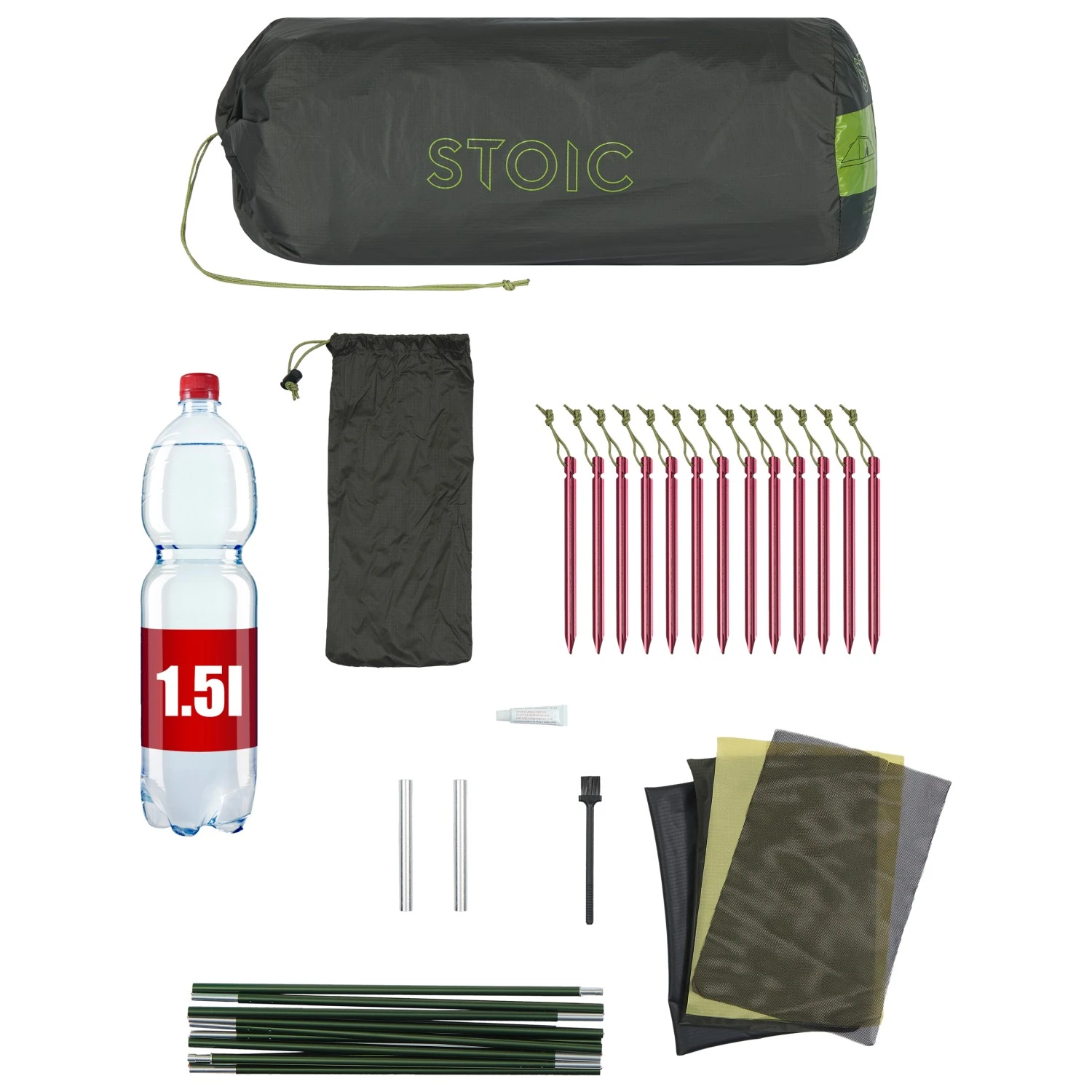 - Inklusive: Packsack; Abspannleinen; 20 Aluminiumheringe (15 cm); Reparaturset